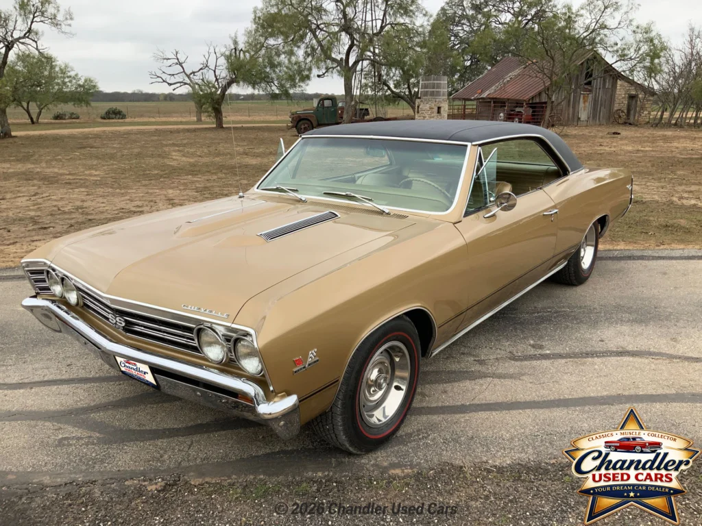 396ci V8, 4-speed manual, power steering, A/C, and power brakes. Classic muscle car in its original Granada Gold with a 12-bolt rear end and Posi traction.